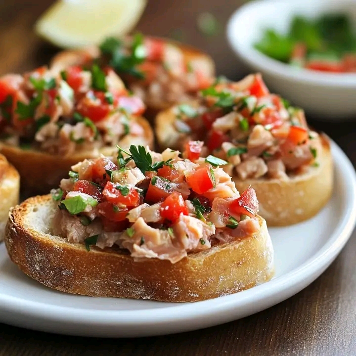 Tuna Rillettes on Bruschetta Ingredients (12 to 15 bites): For the tuna rillettes: 1 can of tuna in water (140 g drained)100 g cream cheese (like St Môret, Philadelphia, or …