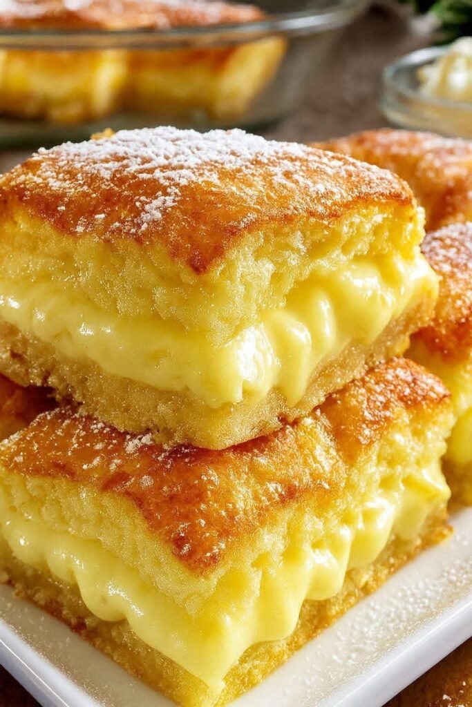 🍰 Creamy Custard Slice Recipe Ingredients For the Cake Layers: 4 large eggs, room temperature 1 cup (200 g) granulated sugar 1 cup (240 ml) whole milk, lukewarm ½ cup …