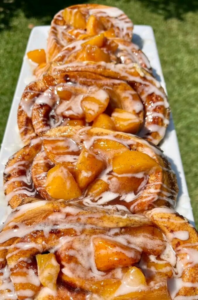 Peach Cobbler Cinnamon Rolls!! 🍑🍑😋Ingredients:For the Dough:4 cups all-purpose flour1/3 cup granulated sugar1 teaspoon salt1 package (2 1/4 teaspoons) active dry yeast1 cup milk, warmed to about 110°F1/4 cup unsalted …