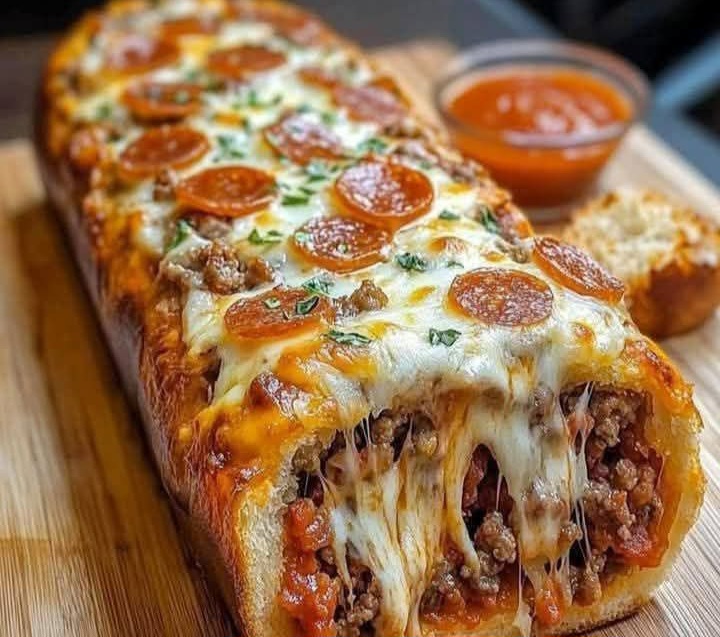 Cheesy Garbage Bread Delight 🧀Ingredients:- 1 package (16 oz) pizza dough- 1/2 lb cooked sausage, crumbled- 1/2 cup pepperoni slices- 1/2 cup bell pepper, chopped- 1/4 cup red onion, chopped- …